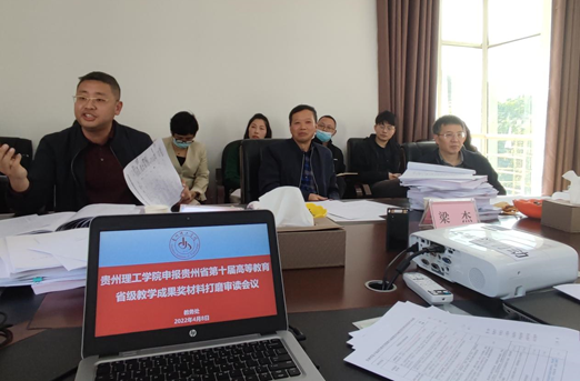 (本网讯 文字:阳培,图片:阳培、苏镜萍)为着力提升学校申报省级教学成果奖的申报质量,认真做好贵州省第十届高等教育省级教学成果奖申报推荐工作,4月8日下午,教务处在蔡家关校区第四教学楼301会议室组织开展了省级教学成果奖申报材料打磨审读会议。特邀贵州省政协委员梁杰教授、贵州大学教务处副处长谢承卫教授、贵州医科大学发展与规划处处长汪志勇教授担任专家到校指导,各申报教学成果奖完成人及团队成员参加了会议。