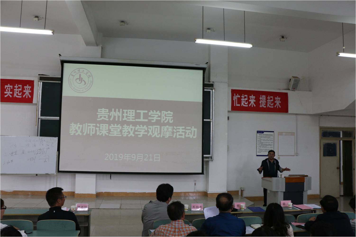 本网讯(教务处苏镜萍)2019年9月21日上午,贵州理工学院教师课堂教学观摩活动在蔡家关校区第三教学楼3-415教室举行,校领导曾羽、苏向东、胡兴灿出席本次活动,各教学单位党政主要负责人、教研室主任(副主任)、实验室主任(副主任),教师工作处、教学质量监控与评估中心、教务处等行政部门负责人,教师代表200余人参加本次活动,活动由副院长梁杰主持。