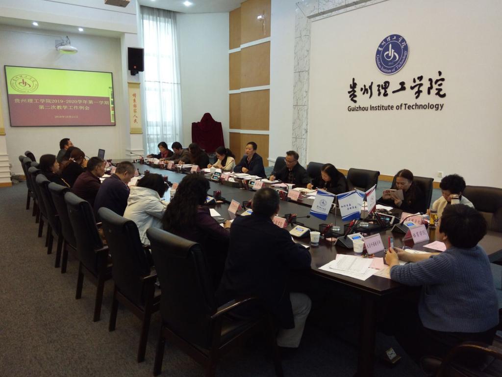 本网讯(教务处舒群威)10月21日下午,我校2019-2020学年第一学期第二次教学工作例会在喀斯特会议厅召开,副校长梁杰出席会议、各学院(教学部、中心)院长(主任)、分管教学工作的(副)院长(主任)、教学科研科负责人、教学质量评估监控中心负责人及教务处全体人员参加会议,会议由教务处处长张开智主持。