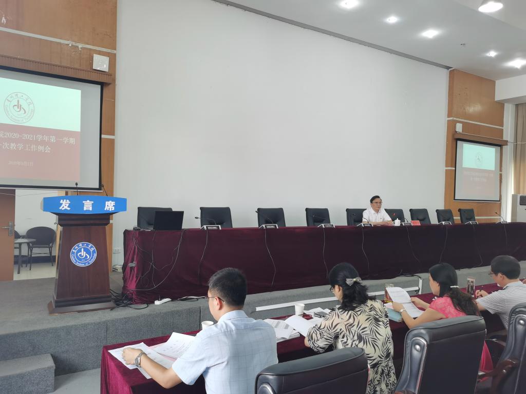 本网讯(教务处舒群威)9月1日,在喀斯特报告厅召开2020-2021学年第一学期第一次教学工作例会,各教学单位分管教学工作负责人、工程训练中心主任、教学科研科负责人及教务处相关人员参加会议,会议由副院长张开智主持。