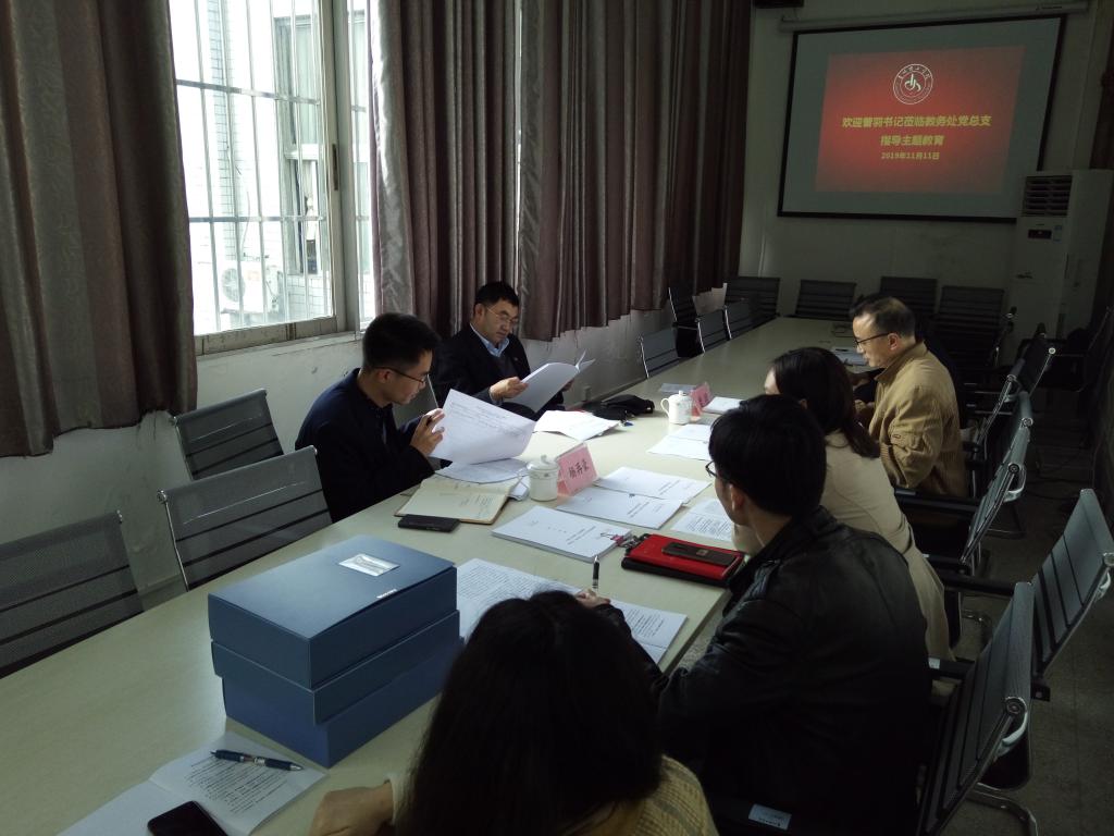 本网讯(教务处舒群威/罗敏)11月11日下午,校党委曾羽书记莅临教务处党总支指导“不忘初心、牢记使命”主题教育工作。校党委办公室主任杨再豪、教务处处长张开智及教务处相关人员参加会议,会议由创新创业中心主任、教务处副处长、教工党支部书记顾亚丽主持。