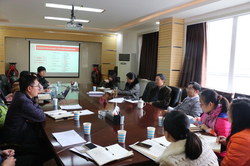 2017年11月23日,校领导曾羽、梁杰率党委办公室、质量评估监控中心相关人员到教务处就教学工作和合格评估建设工作进行调研。