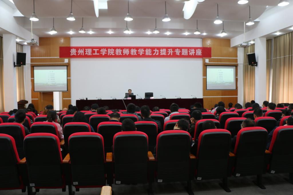 本网讯(教务处 周新国) 2018年11月9日,我校教师教学能力提升专题讲座第二场报告在喀斯特报告厅举行,上海工程技术大学郭辉博士作题为《关于实践教学的思考-以上海工程技术大学为例》的专题报告,报告会由教务处处长邵芳主持。