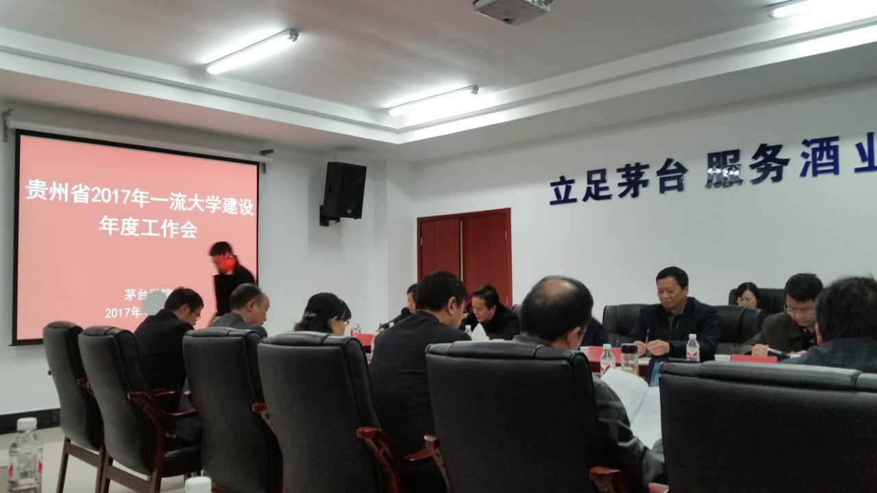 2017年11月29日,梁杰副校长带队参加贵州省2017年一流大学建设年度工作会,会议在茅台学院举行,全省21所普通本科高校一流大学建设分管校领导和教务处处长参加会议,会议由高教处邸姜涛处长主持。