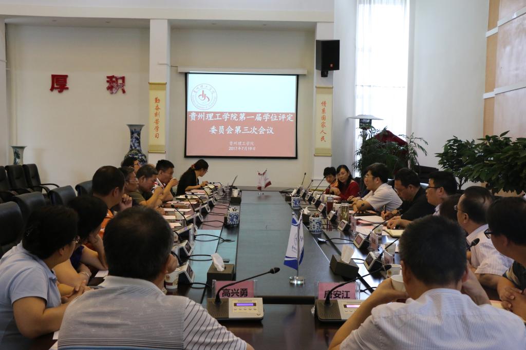 7月19日上午,龙奋杰校长在喀斯特会议厅主持召开了贵州理工学院第一届学位评定委员会第三次会议,副校长王建平出席会议。第一届学位评定委员会委员参加会议。
