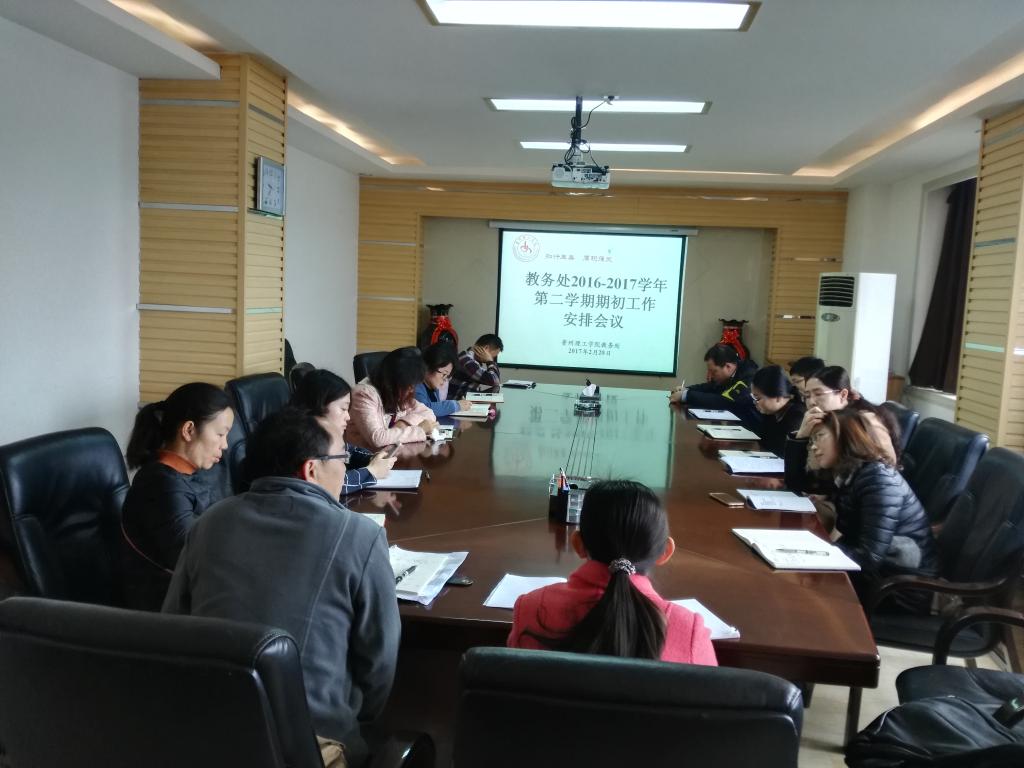 开学伊始,为切实做好开学各项教学准备工作,保障新学期各项教学工作顺利开展,教务处全体人员2月20日提前到岗,对开学前各项工作安排部署,抓好落实,确保完成各项教学准备工作。自到岗以来先后完成补考工作安排、教材发放准备、课表核实发放、学期初教学检查安排、多媒体教室升级维护、实验室工作通知检查等工作。