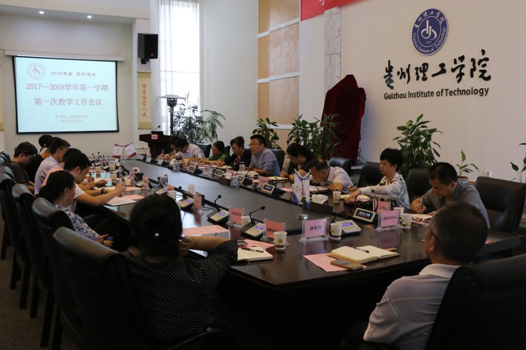 本网讯(教务处 周新国)9月5日下午,贵州理工学院2017-2018学年第一学期第一次教学工作例会在喀斯特会议厅召开,校长助理张清江出席会议,各学院、教学部(中心)院长(主任、部长)、分管教学工作的副院长(副主任、副部长)、教学秘书,教务处、后勤处、教师工作处、评估中心、创新创业中心、网络中心负责人及教务处相关人员参加会议。会议由教务处处长邵芳主持。