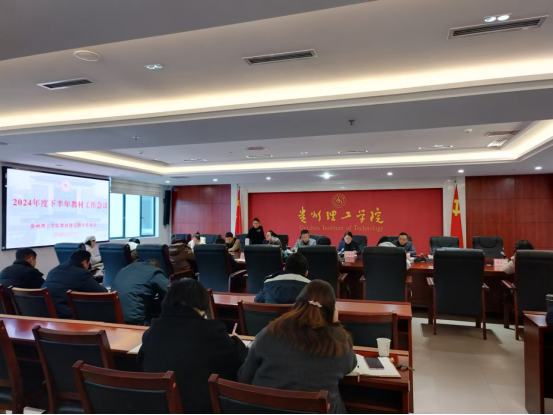 本网讯(教务处杨鑫)12月17日,贵州理工学院2024年下半年教材工作会议在知行楼605会议室召开,校党委副书记、校教材审核专家委员会主任胡兴灿,副院长、校教材建设指导委员会主任安艳玲出席会议,会议由教务处处长陈筠主持。