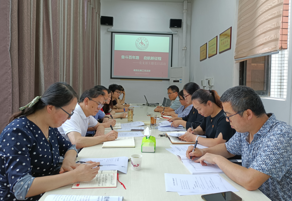 本网讯(教务处 罗敏)为喜迎建党百年,坚定理想信念,汲取智慧力量,2021年6月29日,教务处教师党支部全体党员同志在党员活动室开展“奋斗百年路 启航新征程”主题党日活动,活动由党支部书记顾亚丽主持。
