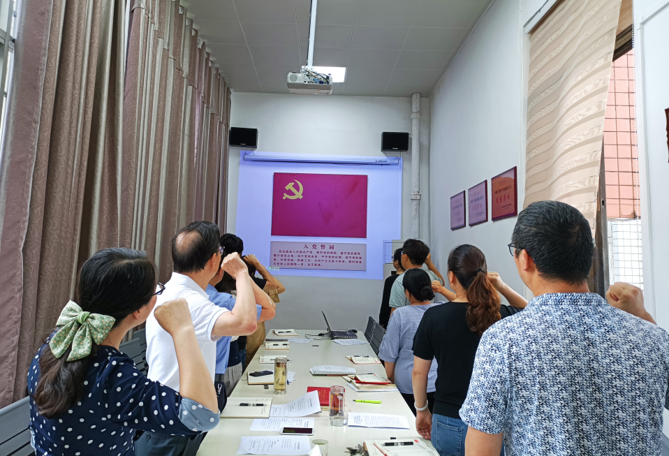 主题党日活动上,全体党员同志面对鲜红的党旗重温入党誓词,铿锵有力的誓言表达对党的无限忠诚和为共产主义奋斗终身的坚定决心,激励和鞭策同志们坚定信仰、恪守承诺、强化担当,用实际行动践行初心使命。