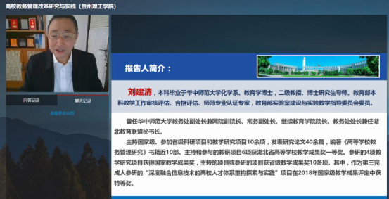 本次培训包含线上1场,线下2场。其中12月21日上午,特邀荆楚理工学院校长刘建清作为线上直播培训专家,刘校长从教务管理相关概念梳理、高等教育改革发展趋势、我国高等教育问题分析、教务管理改革实践措施、做好教务管理工作思考几个方面内容进行解析与分享。