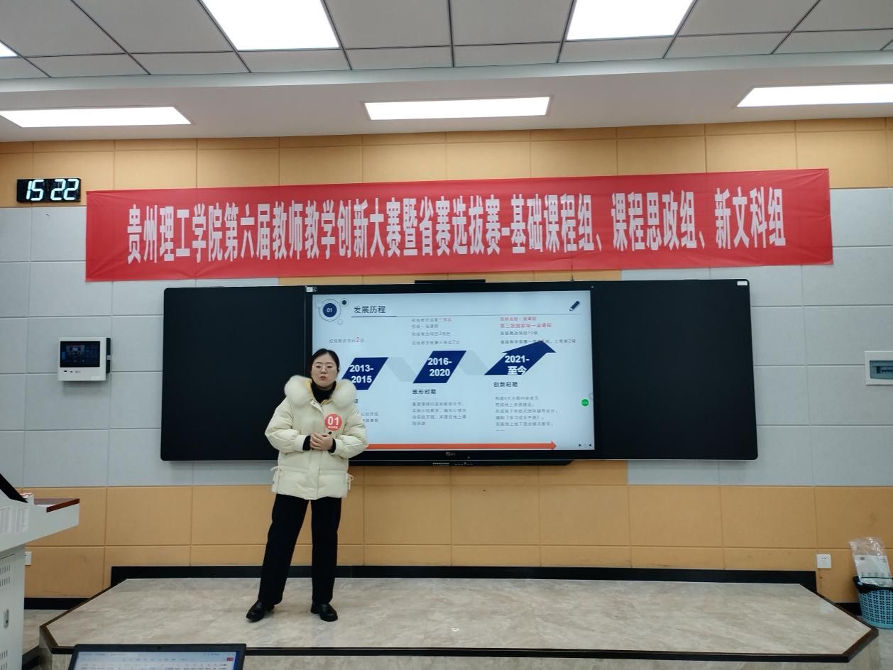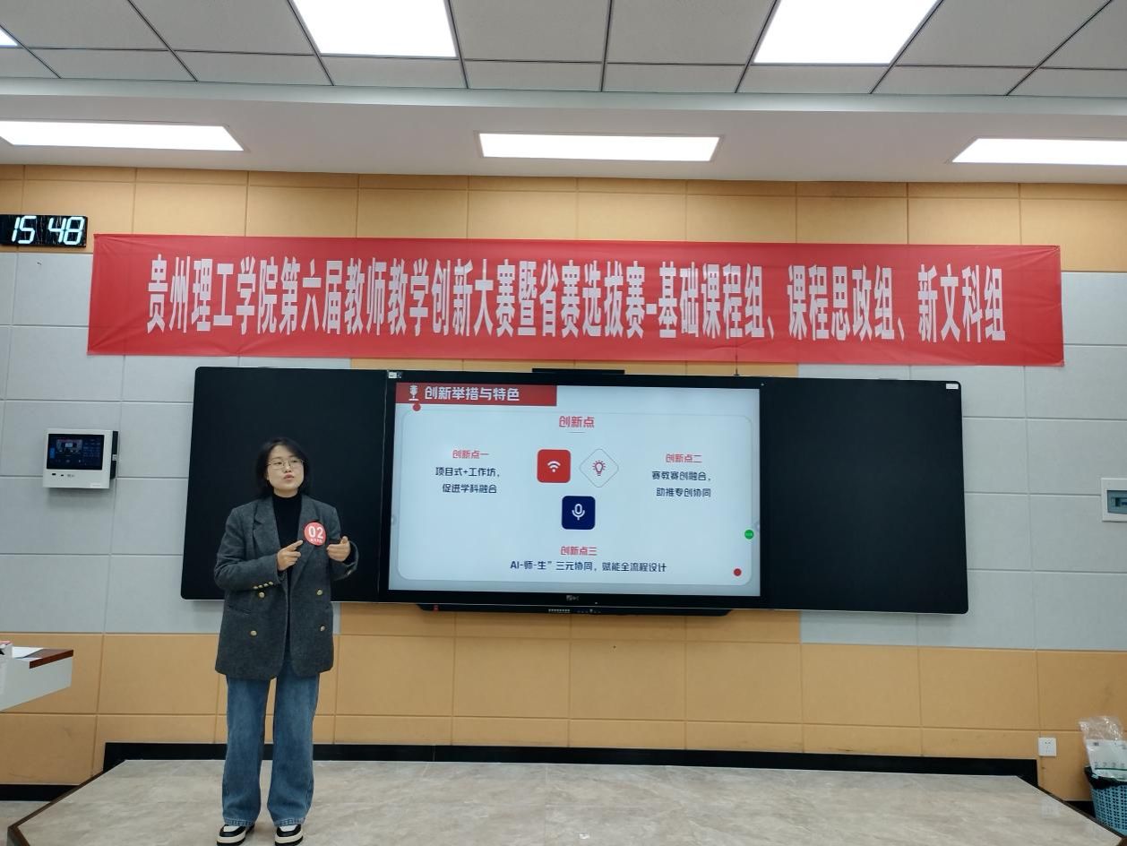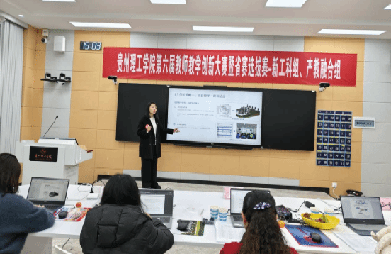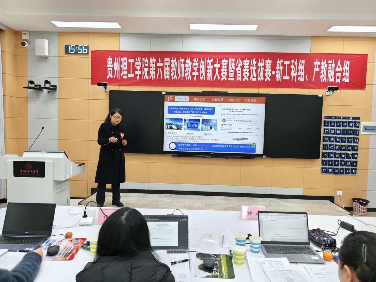 本网讯(教务处 林琳)为深入推进教育教学改革创新,筑牢立德树人根本根基,厚植教育家精神育人底蕴,深化课程思政一体化与“四新”建设,着力探索信息技术与教育教学深度融合的实践路径,提升教师教学创新能力与育人核心素养,1月10日,在天工楼3楼智慧教学区举办了贵州理工学院第六届教师教学创新大赛暨省赛选拔赛,来自18个教学单位的54个教师(团队)参加校赛,5个教师(团队)参加省赛遴选。邀请校内外教学经验丰富的教师担任评委,学校分管教学副校长安艳玲到场指导。