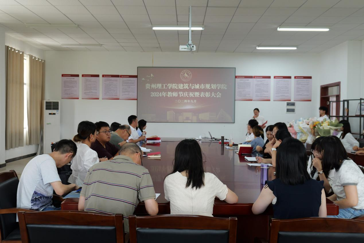 花香清新淡雅,祝福声声动人。2024年9月12日,贵州理工学院建筑与城市规划学院在敏行楼G3501举行第40个教师节庆祝暨表彰大会。表彰学院过去一年中在教学、科研及管理服务工作中表现突出的教师,进一步弘扬尊师重教的良好风尚,激励全体教师奋发向上,为培养更多优秀人才贡献力量。党总支书记袁小松、院长黄娅出席,学院全体教职工和学生代表参加。