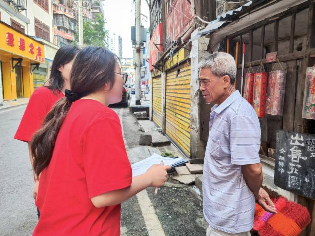 问卷调查定方向。实践过程中,团队明确分工,相互协作。通过线上、线下多种方式针对当地不同区域、不同人群展开了问卷调查,确定了本次红色记忆实践活动的探寻方向。