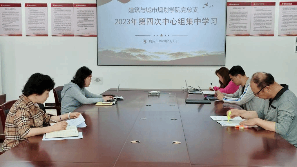 本网讯(建规学院 申偲)5月7日,建筑与城市规划学院党总支理论学习中心组在贵安校区知行楼G3501会议室开展2023年第四次集中学习。本次理论学习主题是“牢记嘱托,感恩思进,感恩奋进,推动学院各项工作迈上新台阶”。学院总支委员参加学习研讨,党总支书记唐丽华主持学习。
