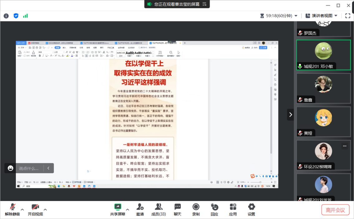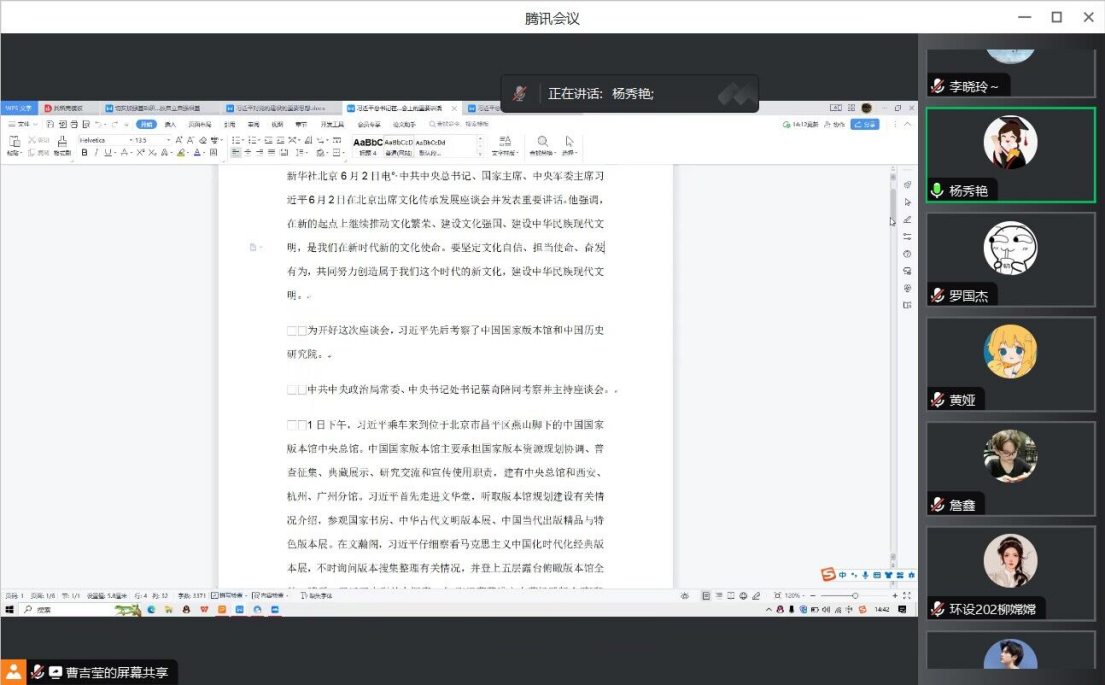 建筑与城市规划学院学生党支部于8月14日下午通过腾讯会议开展“弘扬八一精神 汲取奋进力量”主题党日活动。本次会议由学生党支部副书记李晓玲同志主持,支部全体党员参加。本次活动分为两个阶段。