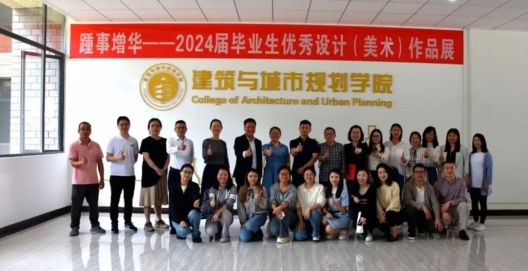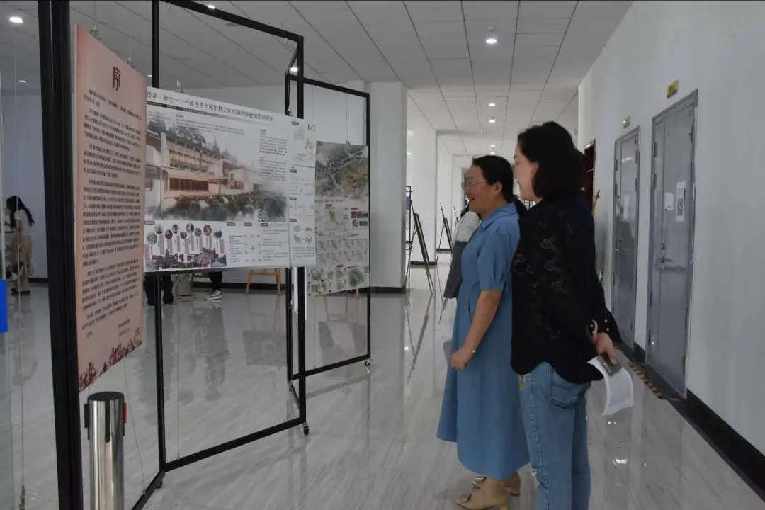 2024年6月12日13:00,“踵事增华——贵州理工学院建筑与城市规划学院2024届毕业生优秀设计(美术)作品展”在学校敏行楼一楼展厅隆重开幕。校党委委员、副校长安艳玲,校党委委员、党委宣传部部长、统战部部长李朋,校教务处副处长曾诚,曾经在建规学院工作过的大数据学院党总支书记张艳、矿业工程学院党总支副书记吴开慧,用人单位代表、广东亿尚教学智能家具制造有限公司总经理周可全、贵州六悦建筑工程有限公司总经理林远航及建规学院各专业负责人、各教研室主任出席开幕式。各位嘉宾与建规学院150余名师生代表齐聚一堂,共同见证这一艺术之展的璀璨启幕。