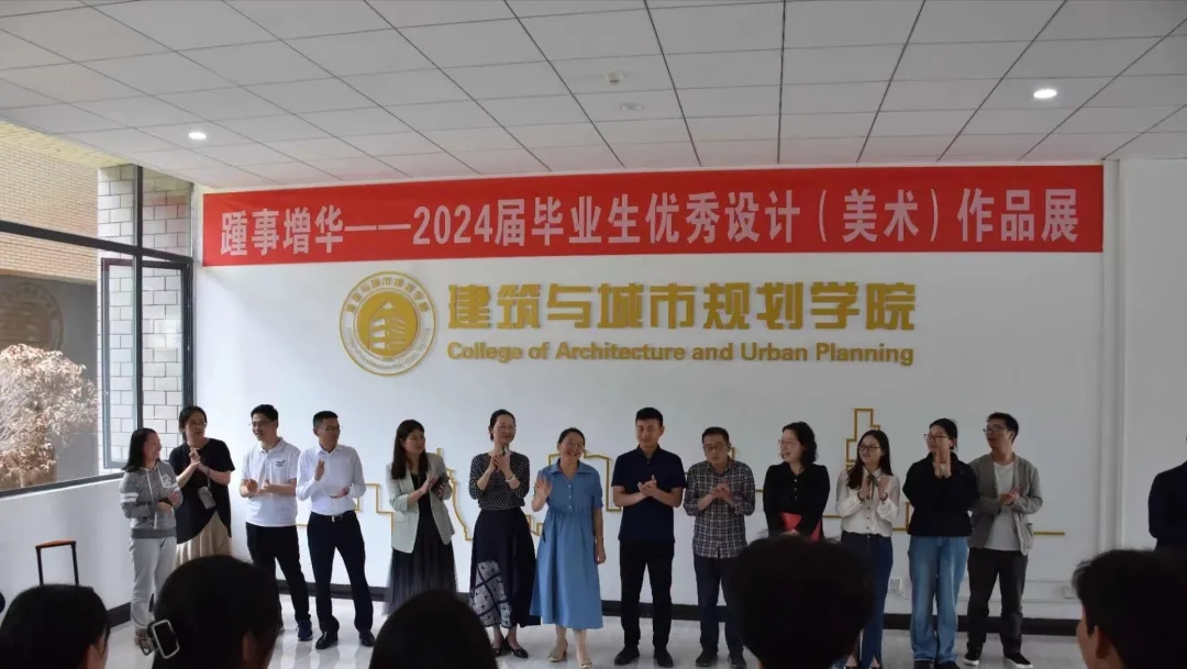 在期待而热烈的掌声中,副校长安艳玲宣布:“踵事增华----贵州理工学院建筑与城市规划学院2024届毕业生优秀设计(美术)作品展开幕”!现场再次响起热烈的掌声。