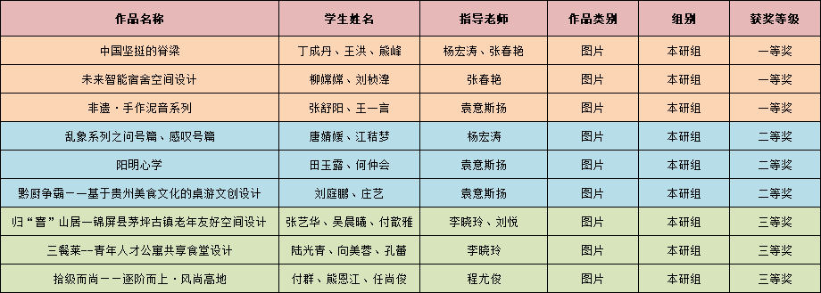 在近日公布的第八届米兰设计周——中国高校设计学科师生优秀作品展贵州赛区获奖名单中,我院师生在此次评审中共斩获9项奖项,其中包括一等奖3项(推荐国赛)、二等奖3项(推荐国赛)和三等奖3项。