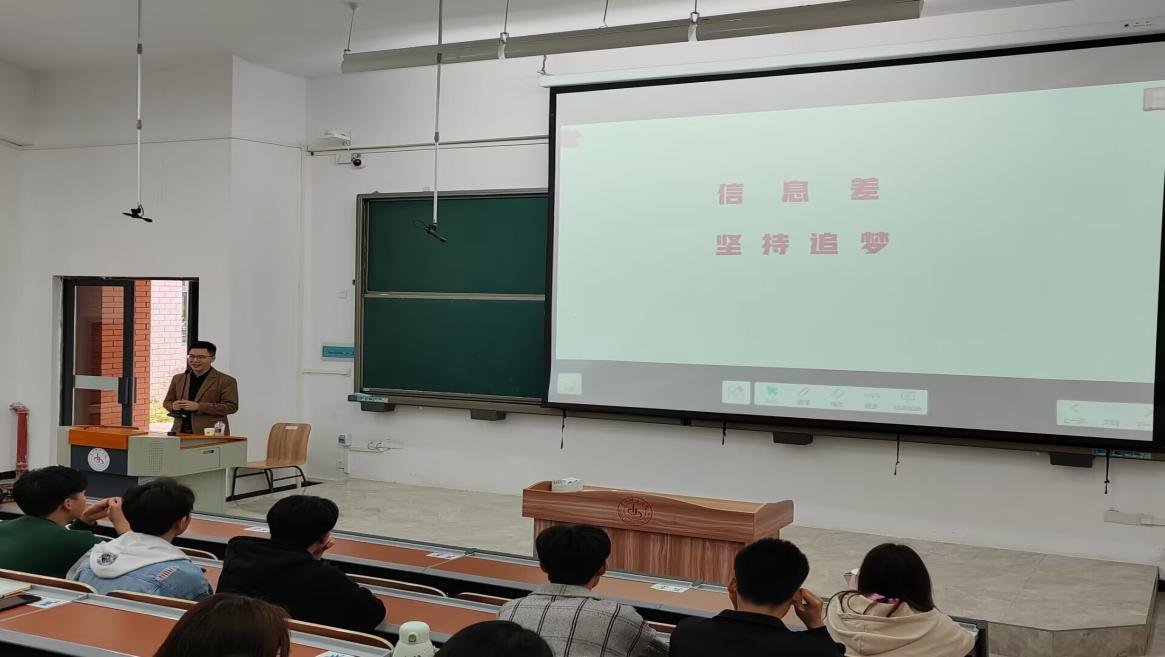 为进一步加强就业指导,帮助学生摆正就业观念、拓宽就业思路、了解就业形势、确定职业目标,我院于2023年4月24日在G1109教室开展了以“追梦之旅”为主题的就业讲座。本次讲座特邀黔图教育金牌讲师陈笑长老师主讲,建规学院党总支副书记、学生科负责人及学院大一到大四的学子们参会聆听。