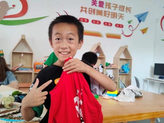 最后,映学团队为乡村孩子分发爱心人士捐赠的学习用品和衣物,耐心地为每个孩子选择合适的衣物。