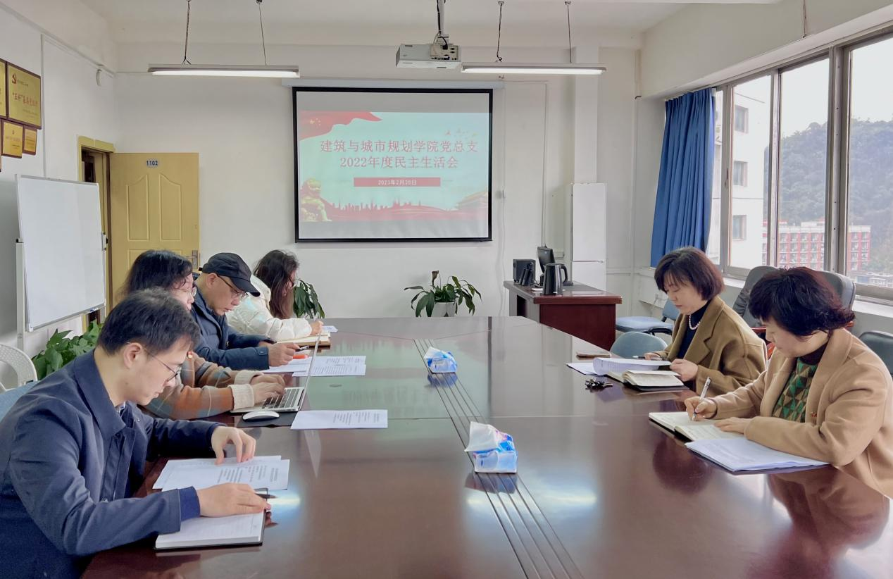 本网讯(建规学院 申偲)2023年2月20日上午,建筑与城市规划学院党总支在蔡家关校区外国语学院会议室开展2022年度民主生活会。会议由党总支书记唐丽华主持,校党委组织部副部长王庆同志到会指导,学院党总支领导班子及成员参加会议。