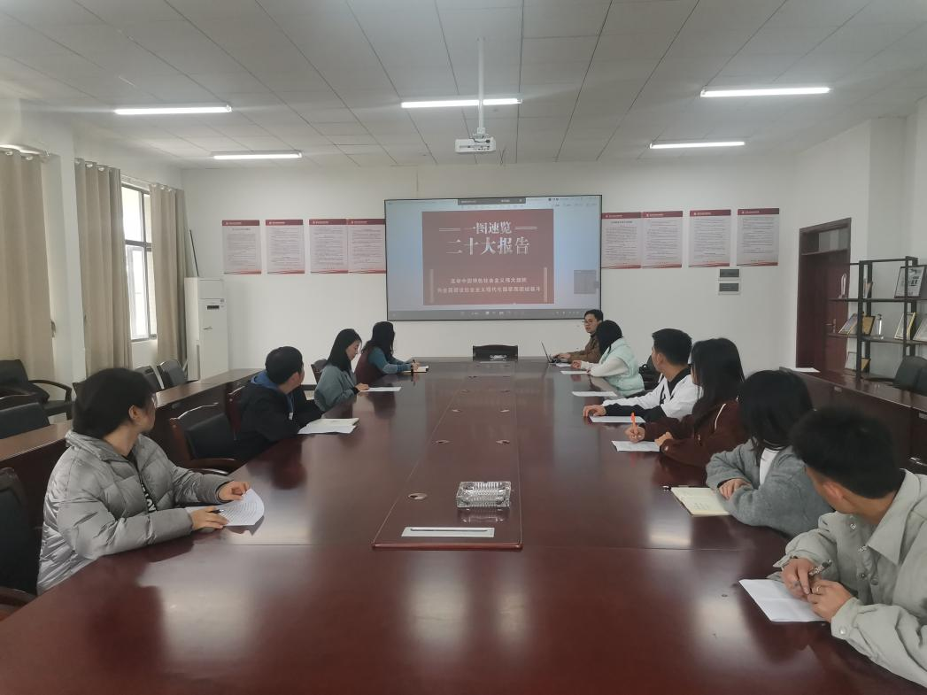 为了持续深入学习宣传贯彻党的二十大精神,2022年11月16日我院学习党的二十大报告读书分享会第三期顺利开展,本次分享会由教师党支部书记颜政纲召集并主持学习。学院党总支副书记黄娅、教师代表及学生代表参加。