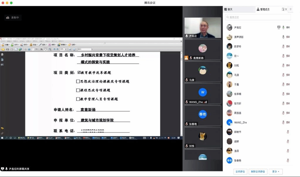 尹昌应简要回顾了培训班自开讲以来历次课程的主要内容,详细了解每位老师参加培训班以来的学习心得和进展,介绍了安排本次案例交流课程“用身边的实例剖析项目申请书撰写要点”的目的和意义。老师们纷纷主动拿出自己撰写的申请书——有教改、课程思政建设、自然科学基金和社会科学基金等多种项目类型——与参加活动的老师们分享;活动中随机抽取到胡婷、马庚、张春艳、袁意斯扬四位老师的申请书作为剖析案例,杨涛、尹昌应分别从教改项目、课程思政建设项目和科研项目不同的选题和立项依据论证视角,与老师们分享经验、交流认识和体会,线上活动气氛热烈。老师们表示,培训班为大家提供了一次很好的学习机会,通过互动交流获取了大量的有益信息,增强了今后申报项目的信心。