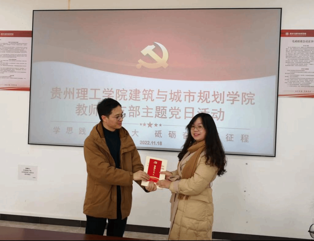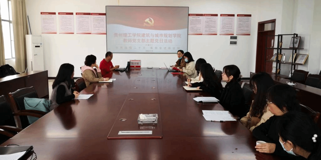 本网讯(建规学院 王喆)11月18日,建筑与城市规划学院教师党支部在贵安校区G3501学院会议室开展了“学思践悟二十大,砥砺奋进新征程”主题党日活动。活动由教师党支部副书记陈梦玲同志主持,在校支部党员同志参加。