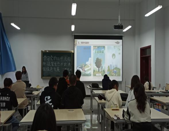 活动初始,文体委员李旭浪首先带领同学们一起学习了党的二十大报告,重点解读了习近平总书记在报告中所提出的“凝聚生态共识,共促绿色发展”的理念和要求。