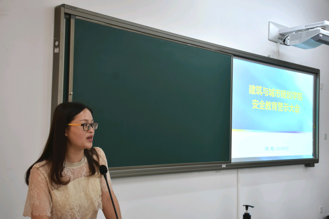 建筑与城市规划学院2022年6月23日中午12:20在G2214召开了2022年学生安全教育警示大会。我院党总支副书记吴开慧为我院“网格员”进行了安全教育培训。2019级、2020级、2021级各班网络联户长(寝室长)参加了警示大会。