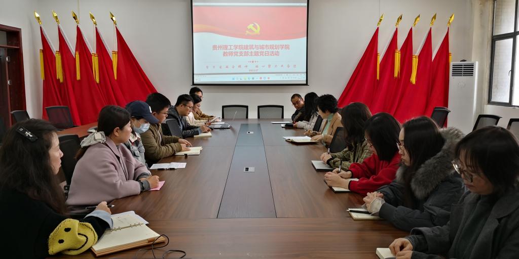 本网讯(建规学院 王喆)2023年2月27日,建筑与城市规划学院教师党支部在贵安校区知行楼3514党员活动室开展了“学习省两会精神,凝心聚力共奋进”主题党日活动。活动由教师党支部副书记陈梦玲同志主持,支部全体党员参加。