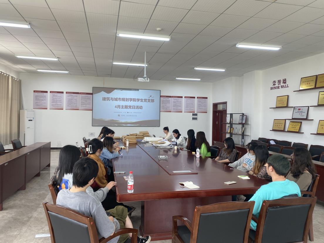 2022年4月27日,建筑与城市规划学院学生党支部在贵安校区G3501会议室召开“缅怀革命先烈 弘扬红船精神”主题党日活动,活动由学生党支部书记周红韵主持,党总支副书记吴开慧、学生支部副书记李晓玲及支部全体党员参加。