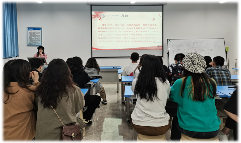 首先,团支书邹讯同学向同学们介绍五四运动爆发的历史背景、起因、主要经过及其历史意义,让同学们了解了“五四运动”的精神内涵,激发了同学们的爱国情怀和历史责任感。
