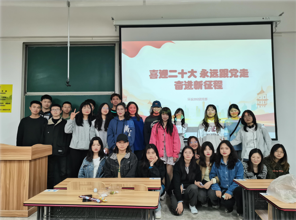 2022年是党的二十大召开之年,是实施“十四五”规划的关键之年,为迎接党的二十大胜利召开,2022年4月7日晚,环设202班在G1207教室举行了“喜迎二十大,永远跟党走,奋进新征程”主题团日活动。