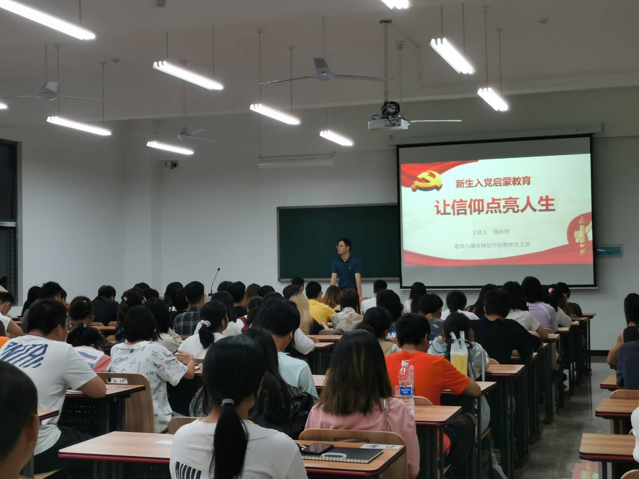 本网讯(建筑与城市规划学院 吴昔浓 李云菲 )为切实做好新生入学教育工作,提高新生的思想觉悟,增强新生对党的认识,激发新生的入党积极性,吸引优秀学生积极向党组织靠拢,建筑与城市规划学院于2021年9月28日晚在G2209开展了入党启蒙教育活动,本次活动由学院党支部书记颜政纲老师主讲。