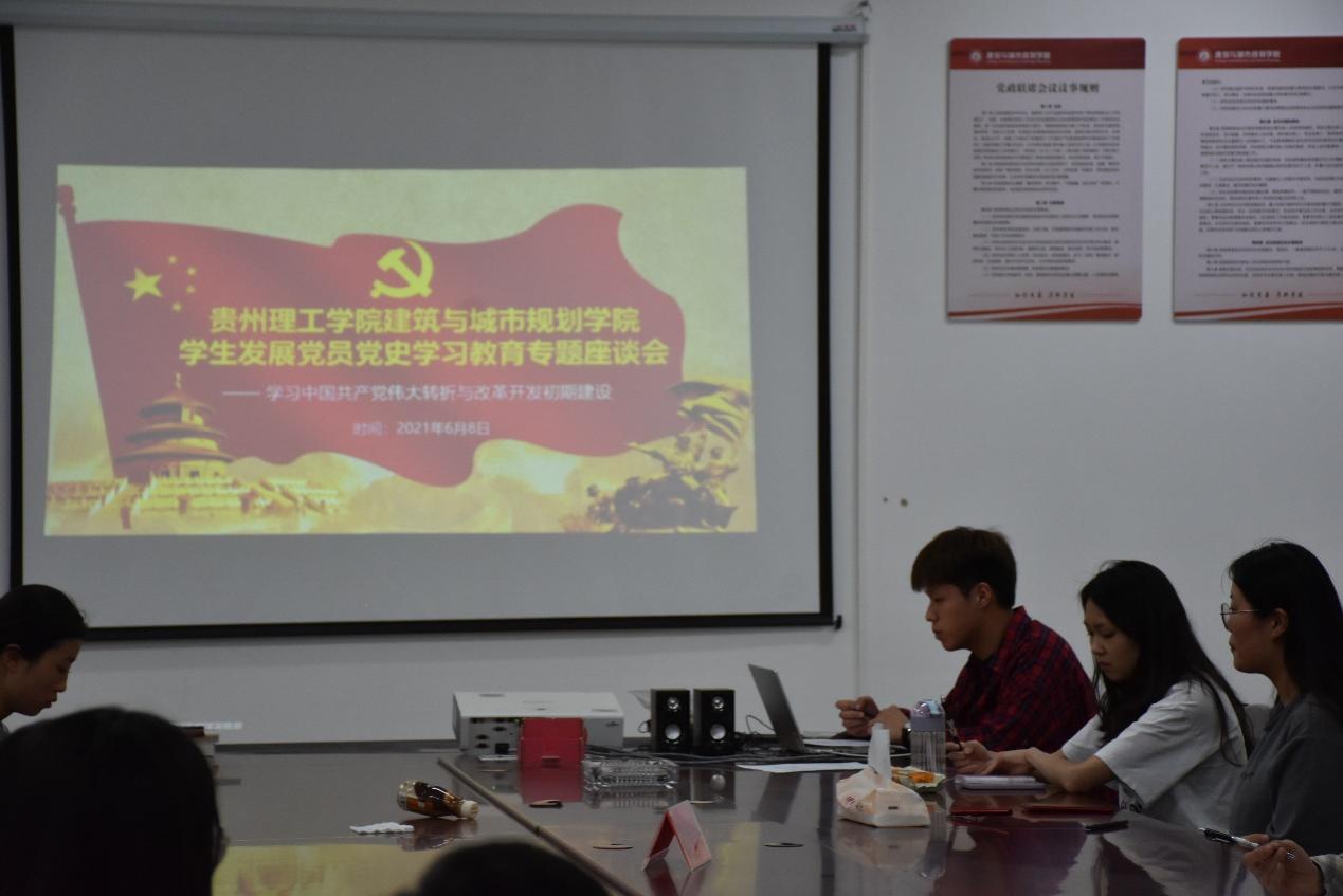 2021年6月8日晚,建筑与城市规划学院全体学生发展党员在贵安校区G3501会议室开展“学习中国共产党伟大转折与改革开放初期建设”党史专题党课,活动由柯诚同志主持。