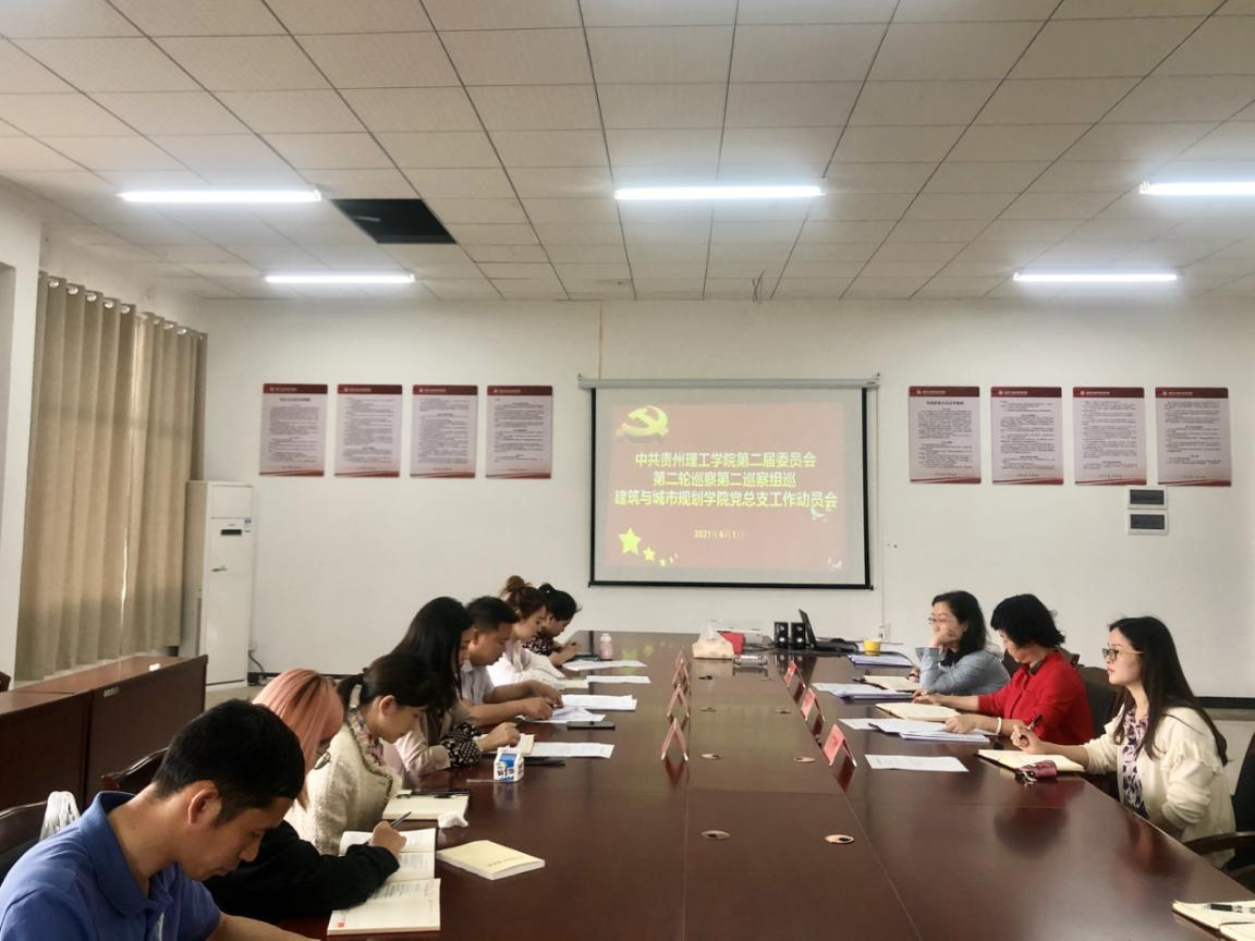 本网讯(建规学院申偲) 根据党委关于巡察工作的统一部署,2021年6月1日下午,党委第二巡察组巡察建筑与城市规划学院党总支工作动员会在贵安校区知行楼五楼G3501会议室召开。校党委第二巡察组组长杨鉴福、副组长钟银星、成员张梦、孙秋韵及建筑与城市规划学院党总支班子成员出席会议,会议由建筑与城市规划学院党总支书记唐丽华主持,全院教职工参会。