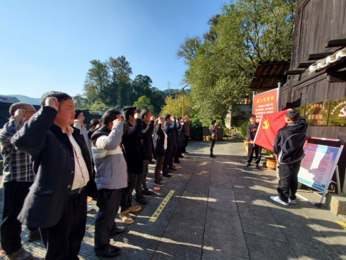 现场学习中,全体党员参观贵州省爱国主义教育基地龙大道烈士故居,学习中国共产党早期优秀共产党员龙大道同志的英勇事迹,全体党员现场重温入党誓词。激励全体党员要发扬革命先辈艰苦奋斗的作风,赓续共产党人精神血脉,坚定信仰、勇毅担当,坚定理想信念,用实际行动践行初心使命。