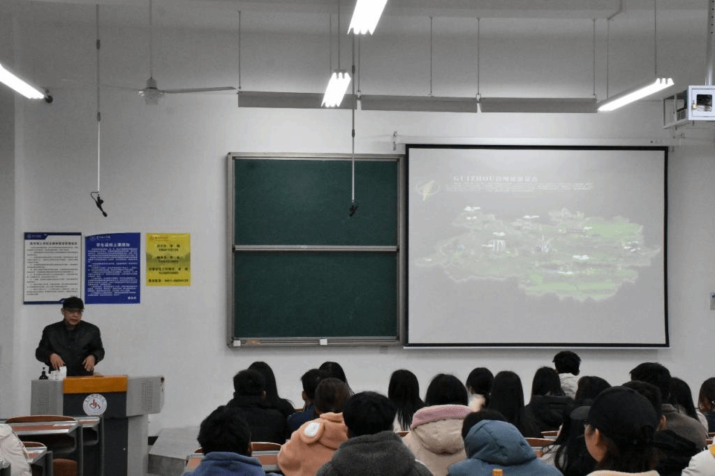 讲座中杨涛老师首先为我们介绍了新兴学科——旅游地学与规划工程,他为大家详细讲解游地学实践与贵州旅游发展,乡村振兴与村庄规划设计新趋势并对行业进行了行业介绍及前景分析,让大家对自己专业的就业方向有了新的了解和认识,了解了此学科与人文地理与城乡规划相互关系,开阔了同学们的视野,让同学们了解了另一种专业方向。最后杨涛老师表示希望同学们通过这次讲座能够认识到在旅游规划中认知地图的重要性,在学习的专业学习中确定自己的学习方向和目标,规划好自己的学习职业生涯。