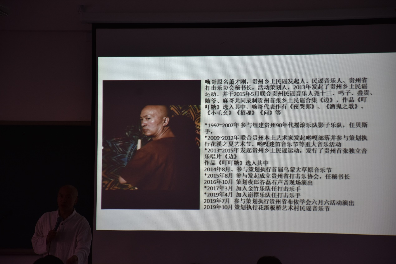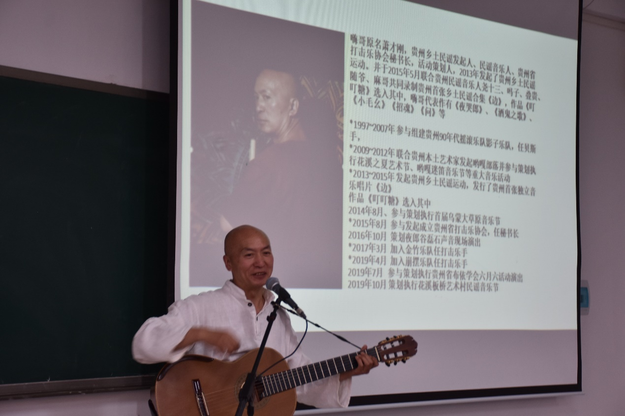 本网讯 为全面贯彻党的教育方针,以立德树人为根本,进一步增强建筑与城市规划学院全体学生的艺术修养和文化素养,增强学生的民族文化认同感,培养学生热爱祖国的情感,增强民族自豪感和责任心,开拓学生专业视野,强化学生将贵州本土文化与专业融合的意识。建筑与城市规划学院于2021年5月27日邀请贵州省乡土民谣发起人萧才刚先生,与我院黄娅副院长一同讲授“贵州乡土文化之乡土民谣”。