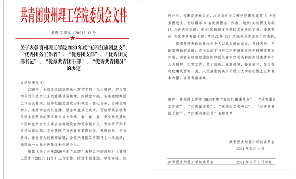 (本网讯 建规学院宣传部 王旭阳)为积极引导和教育广大团员青年学习和弘扬“五四”精神,贵州理工学院“五四”表彰大会于5月6号下午在蔡家关校区逸夫大礼堂隆重召开。我院多名老师和学子获得表彰。