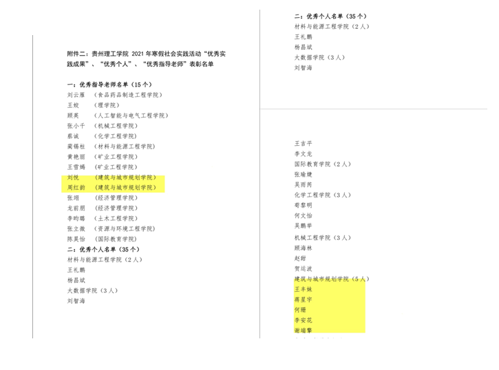 在对于寒假社会实践表彰中,我院刘悦、周红韵老师获得优秀指导老师;王丰妹等5同学获得优秀个人以及两个优秀实践成果。