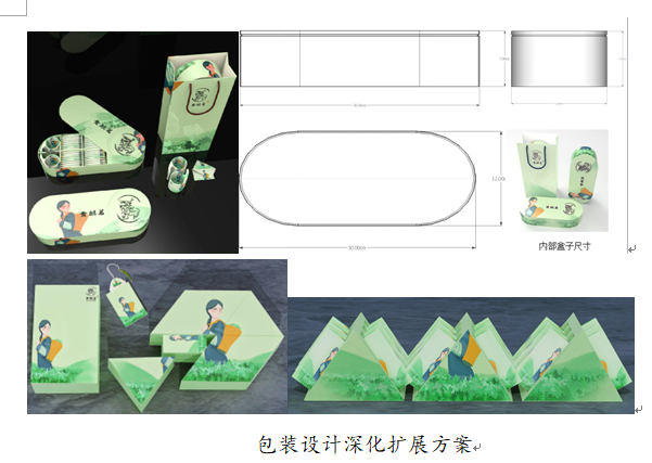 围绕茶叶包装设计这个重点,项目团队经过市场调研分析,确定了地域特色、红色文化、伴手礼三个设计思路,找到了实现载体,但如何将载体创造性使用成为设计难点。项目负责人李晓玲、郭晓节老师指导学生积极拓展思维,不断尝试创新,历经三个多月最终形成了7套包装设计方案,制作成手册进行展示,并选择其中3套方案进行深化扩展,初见成效。