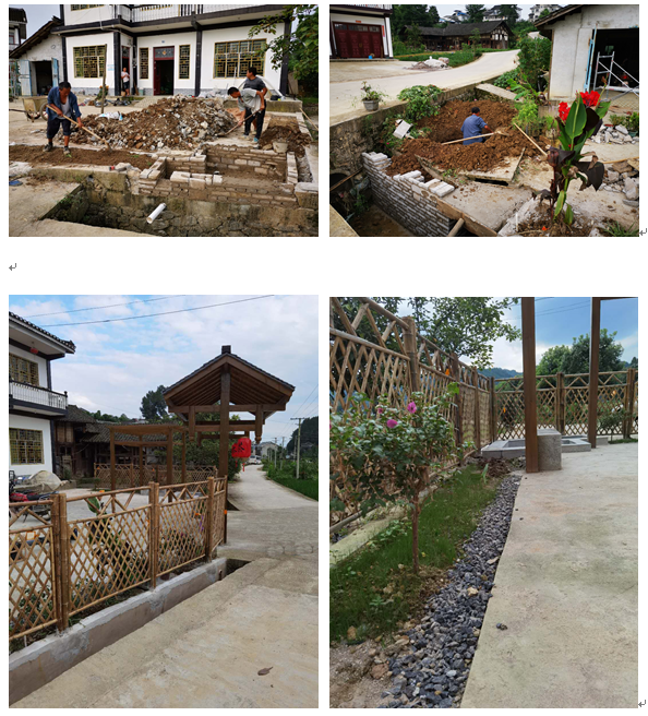 2019年暑假,院长苏向东亲自率队前往湄潭县复兴镇观音阁村实地调研,结合地方需求和我校学科专业优势,确定了“农村人居环境整治”这一脱贫攻坚示范项目,明确了“三变”的农村环境整治思路,即废水变清水、阳光变灯光、农院变庭院。当年,建规学院颜政纲博士根据“三变”思路设计了农院改造方案,涵盖生态滤水花池、道路与庭院太阳能照明、院门、竹木栅栏庭院维护结构、外墙修复及景观小品等多项建设工程。