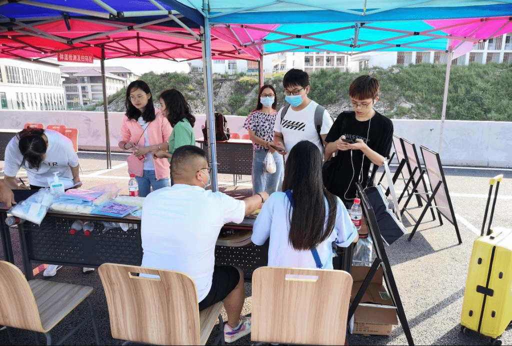 学生返校前,学院专门制定了工作方案,规范学生返校流程,落实疫情防控各项工作。8月30日当天,学院领导、辅导员、班主任全部到岗,迎接久别的同学们。校门口,同学们有序扫码、测体温、消杀,办理入校手续。炎炎烈日下老师们坚守岗位,为学生健康保驾护航。