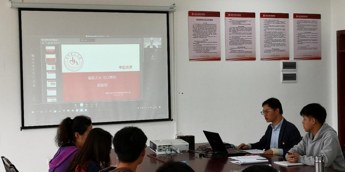 本网讯(建规学院 王喆)为进一步激发师生爱党爱国爱社会主义的巨大热情,坚定“四个自信”,9月29日,建筑与城市规划学院教师党支部在贵安校区3501会议室开展“中国共产党党史、新中国史、改革开放史、社会主义发展史学习教育”主题党日活动。活动由支部书记颜政纲主持,我院师生党员参加活动。