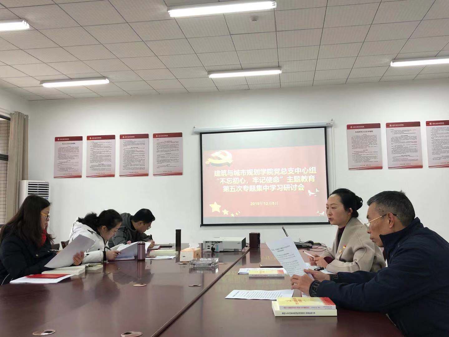 本网讯(建规学院 李晓玲)12月5日,建筑与城市规划学院党总支中心组在贵安校区知行楼G3501会议室举行以“学习贯彻党的十九届四中全会精神”为主题的“不忘初心、牢记使命”主题教育第五次专题集中学习研讨。学院党总支班子成员、科级干部、党支部书记参加学习研讨,党总支书记张艳主持学习。