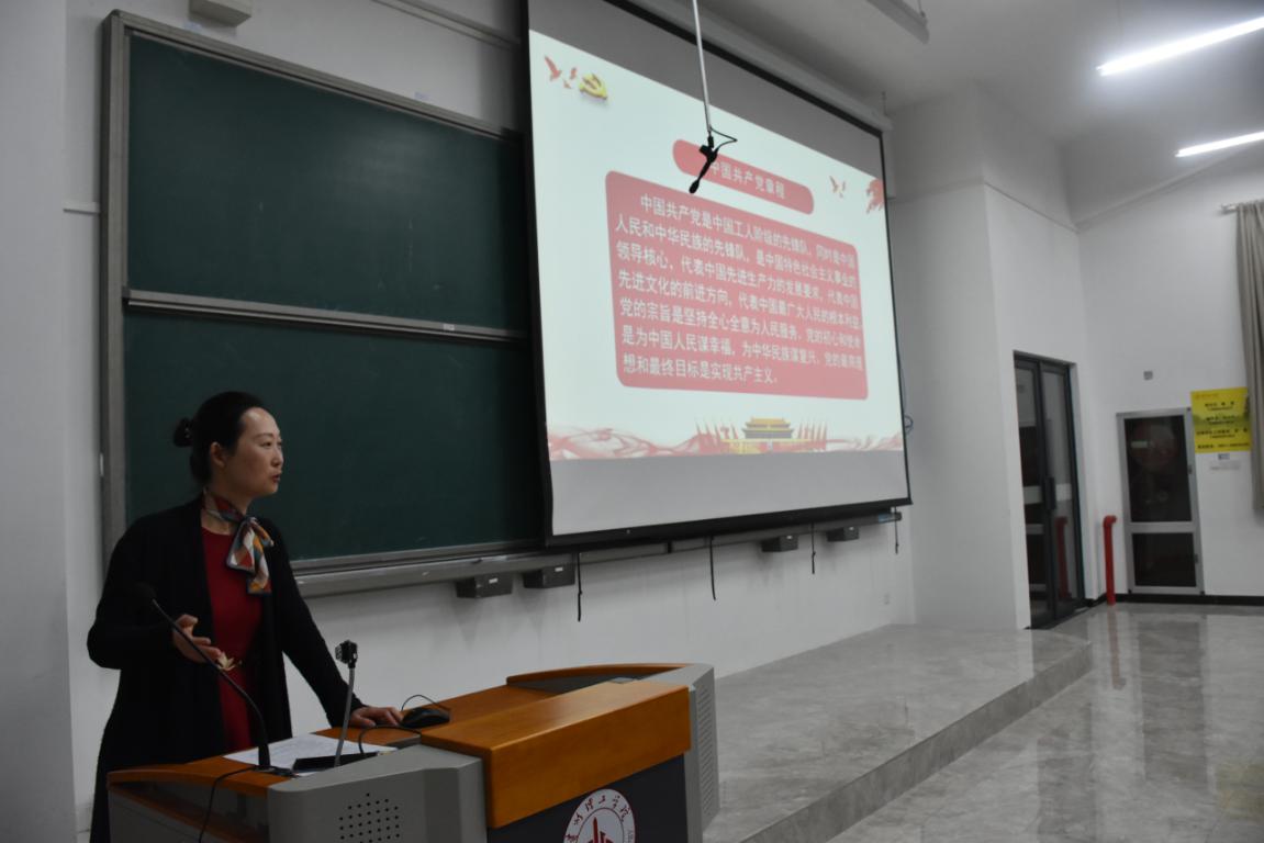 微电影《红色气质》拉开了本次讲座序幕。重温红色记忆,影片中一个个为国家舍生忘死的党员、一段段为民族艰苦奋斗的历程,让大家感受到共产主义信仰的力量。随后,张艳书记详细阐述了中国共产党的性质和宗旨,深入分析了“大学生为什么要加入中国共产党”,以及入党的基本条件、基本程序、入党申请书的写法等问题,为新生在政治上进步指路引航。