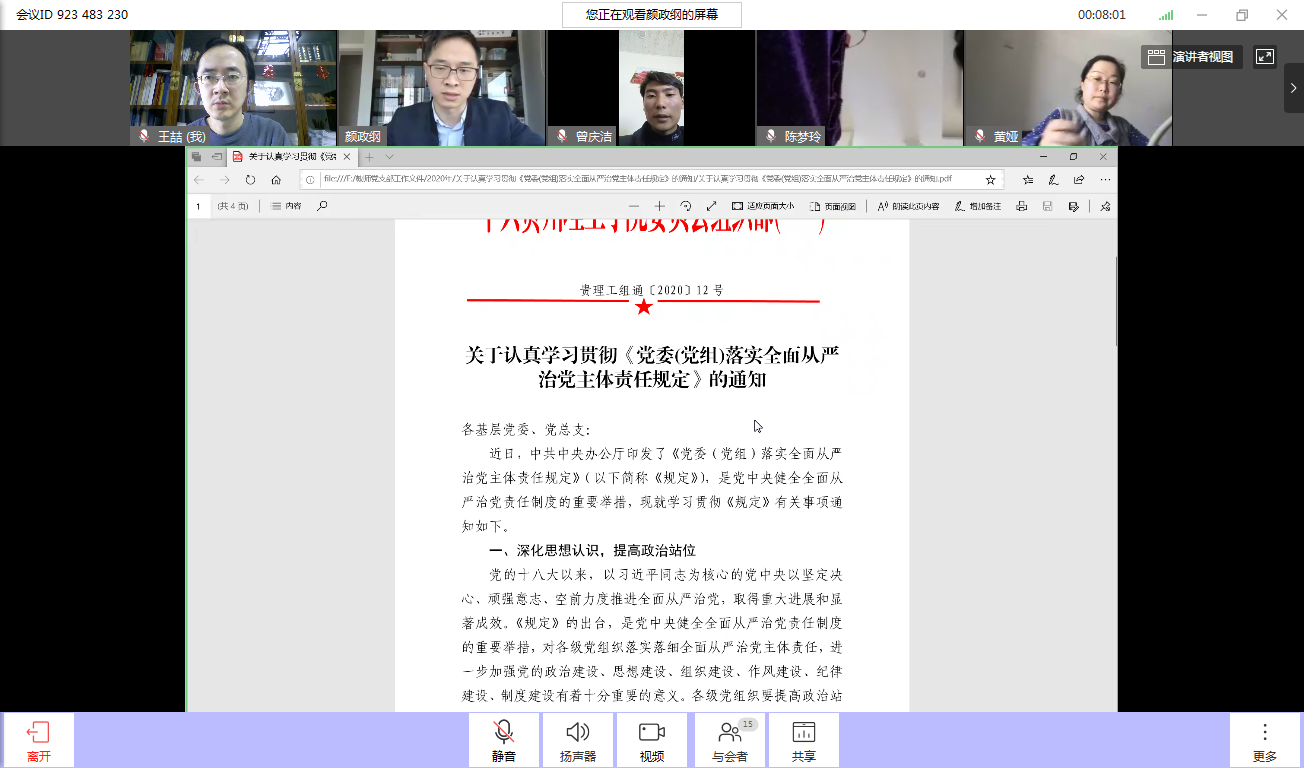 本网讯(建规学院 王喆)4月15日,建筑与城市规划学院教师党支部在WeLink平台开展主题党日活动,组织全体师生党员专题学习《党委(党组)落实全面从严治党主体责任规定》(以下简称《规定》)。活动由教师党支部书记颜政纲主持。